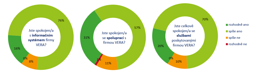 V červnu 2025 realizovala renomovaná agentura ppm factum průzkum spokojenosti zákazníků společnosti VERA. Z každého úřadu bylo osloveno několik osob a svůj názor sdělilo 51 % z nich. Zákazníci odpovídali na otázky týkající se zejména spokojenosti a rozvoje informačního systému. Více než 90 % respondentů projevilo svoji spokojenost.